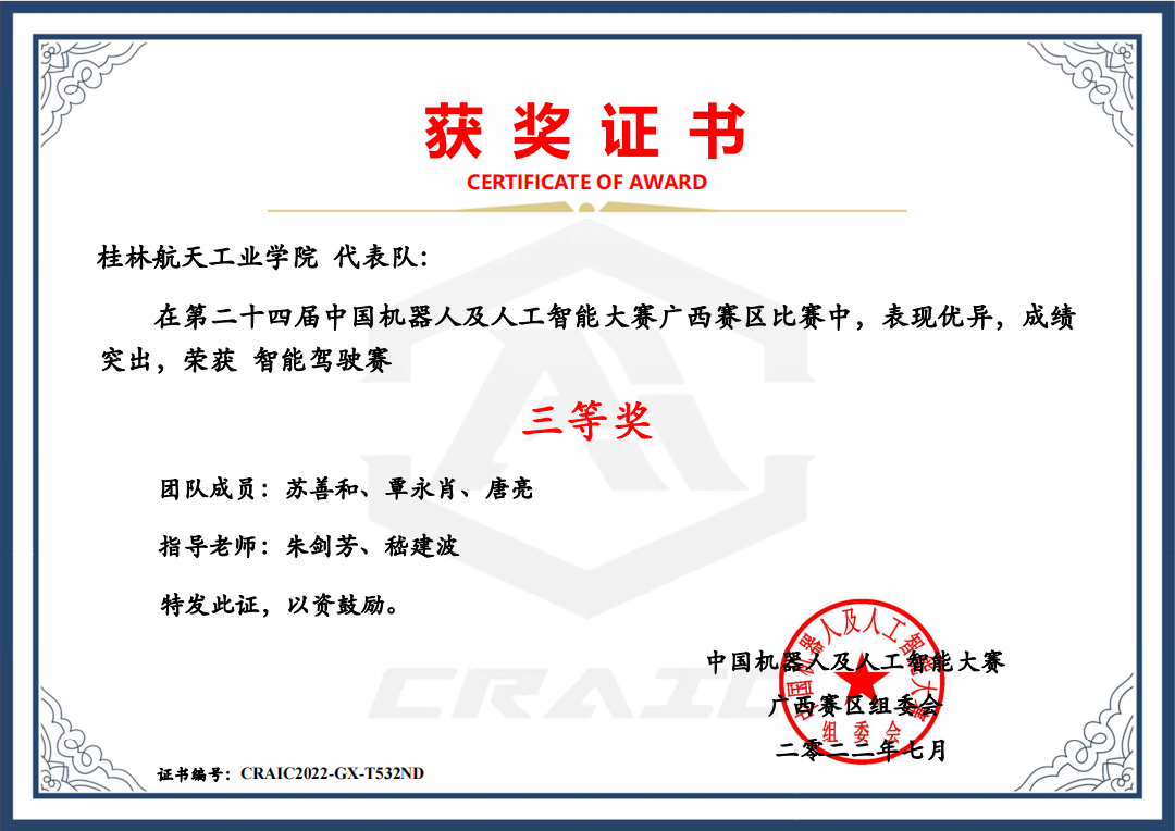 第24届中国机器人及人工智能大赛广西赛区于2022年7月2日下午圆满结束,今年系公司首次参加该项赛事,在公司公司各级领导的大力支持下,公司组织参赛的队伍在本次比赛中荣获二等奖1项,三等奖2项,三支队伍均被推荐参加国赛。