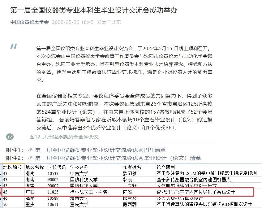 第一届全国仪器类专业本科生毕业设计交流会于2022年5月在线上隆重召开。公司必一运动2018级通信工程专业陈璐同学的毕业设计《智能消防飞车室内定位导航子系统设计》在会议中被评为优秀毕业设计,论文被收录于第一届全国仪器类专业本科生毕业设计交流会优秀论文集。