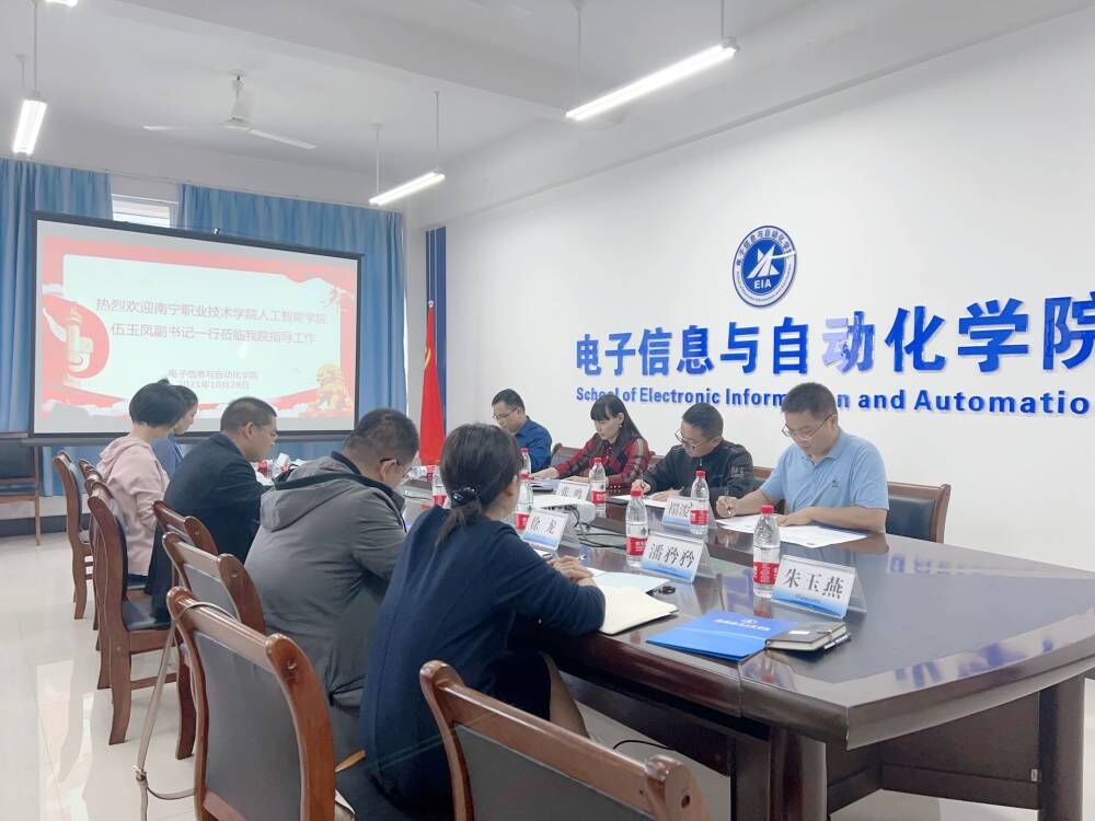 2021年10月28日下午,南宁职业公司必一运动伍玉凤副书记一行4人来公司调研交流。必一运动党总支副书记张宝磊、办公室主任廖旺荣、团委书记田芬以及各支部书记参加交流座谈会。