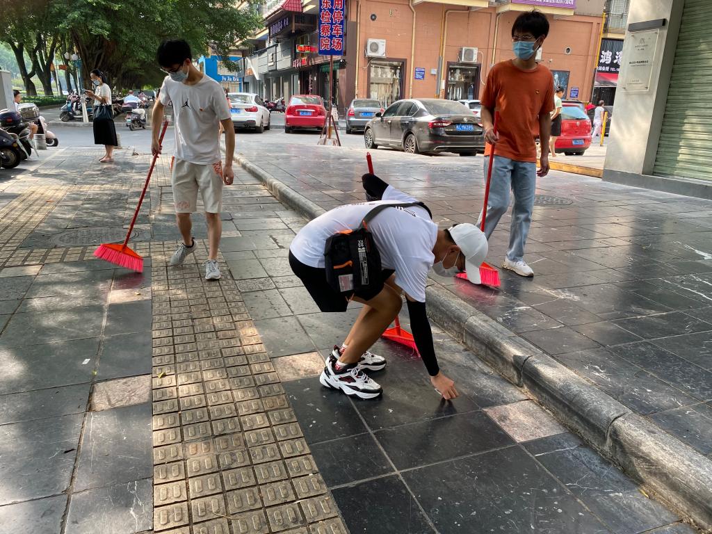 在指导老师的带领下,员工党员志愿者们上午8点准时到达七星区三里店,在益华城红绿灯路口分成两组分别向龙隐路和七星路两个方向的人行道进行街道清扫、创城复检宣传、动员群众为桂林市的“创城”复检工作贡献力量志愿活动。烈日炎炎,在两个半小时的工作中党员志愿者们认真工作,任劳任怨,仔细清扫街道的每一个死角,虽然工作很辛苦,但看到干净整洁的街道,党员志愿者们脸上都露出了开心的笑容。