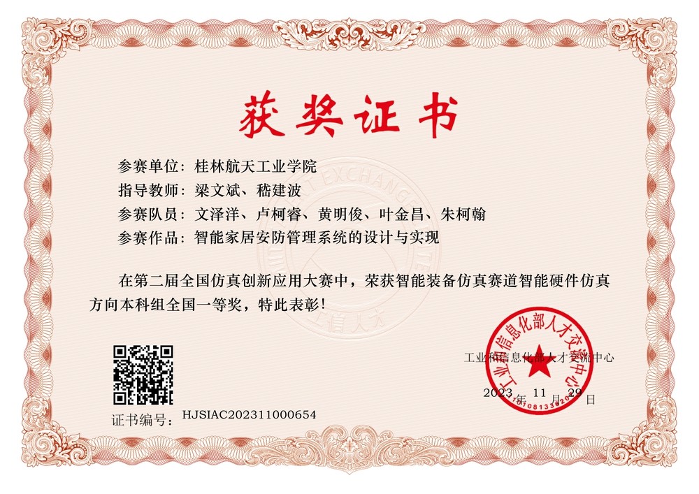 必一运动对本次大赛高度重视,积极组织师生参加比赛,营造良好的竞赛环境,为参赛员工提供全面保障。公司教师指导的文泽洋团队《智能家居安防管理系统的设计与实现》和何靖文团队《智能楼宇办公管理系统的设计与实现》以省赛一等奖的好成绩入围全国总决赛,并凭借出色的表现最终荣获智能装备仿真赛道智能硬件仿真方向本科组全国一等奖,为公司和公司争得了荣誉。