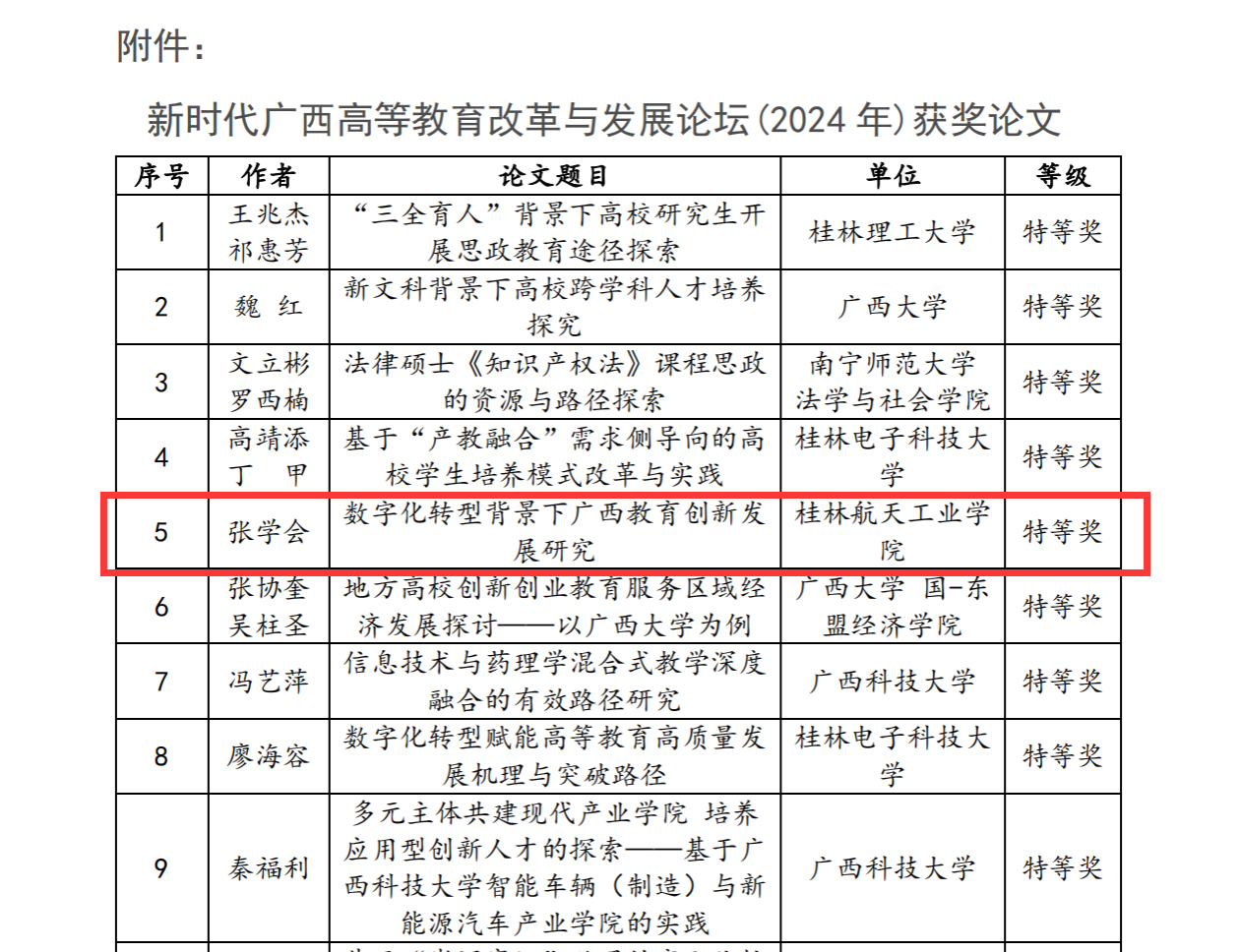 近日,广西高等教育学会发布新时代广西高等教育改革与发展论坛(2024年)征文获奖名单,公司张学会教师撰写的《数字化转型背景下广西教育创新发展研究》论文荣获特等奖,论文将在大会分论坛作发言交流。
