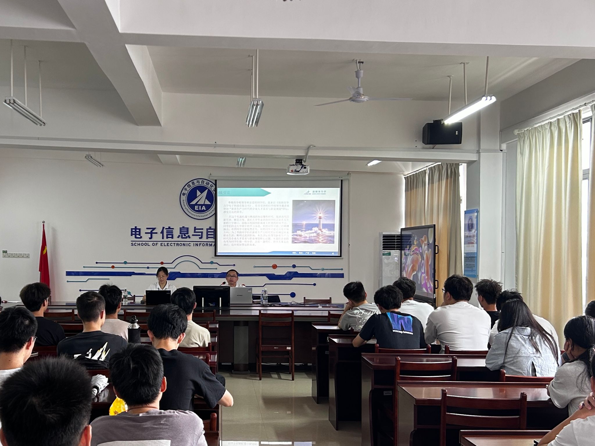 2003级员工、深圳市西地科技有限公司创始人叶太军、林德全以“社会主义市场经济下毕业生的自我定位”为主题,结合自身丰富的创业经历,从创业思维、市场洞察、团队构建等多个角度为毕业生们进行了深入剖析,他强调了创业过程中要敢于尝试、勇于创新的重要性,并鼓励毕业生们要勇敢追求自己的梦想,不畏艰难,坚持到底。深圳市华力宇电子科技有限公司副总经理禹乾勋以“新质生产力时代的企业人才需求与职业规划”为题,从新质生产力的概念、特征及其对企业人才需求的影响出发,为毕业生们详细解读了新时代背景下企业所需人才的新特质和职业规划的重要性。东莞铭普光磁股份有限公司人事专员欧炜文以“毕业生求职面试技巧及注意事项”为主题,从“面试前准备、面试中回答、面试后咨询”三个大方向进行详细讲解。