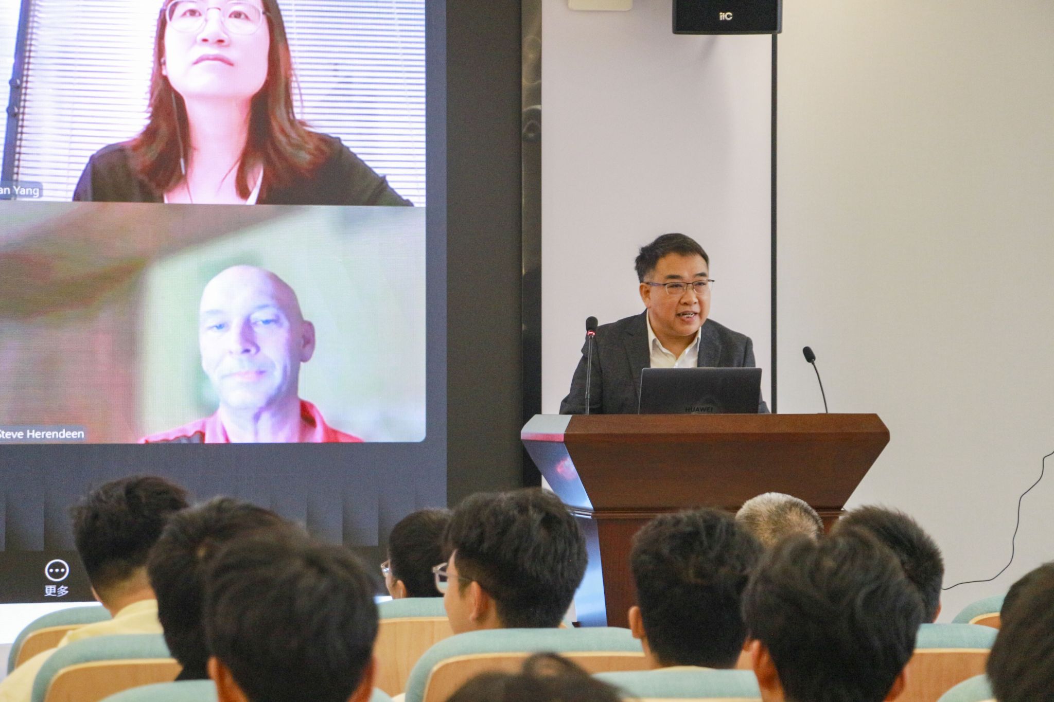 美国印第安纳理工公司副董事长Steve Herendeen、工程与计算机科学公司经理Lucy Yang和电气工程公司教授兼主席Zakariya Al-Hamouz发表视频讲话,从校情、专业结构、公司实验室及学习模式等方面进行了简要介绍,鼓励同学们享受学习旅程中的机遇与挑战,成为具有全球竞争力的工程专业人才,为未来世界做出卓越贡献。