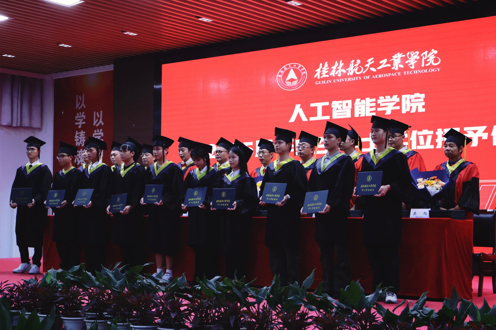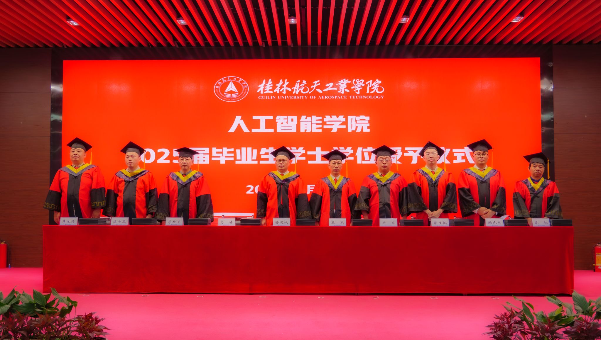 公司2025届毕业生学位授予仪式在校歌声中圆满落幕,全体毕业生将以星辰为引、以大海为征,在新时代的壮阔画卷中挥毫泼墨,奋力书写属于桂航人的璀璨华章!
