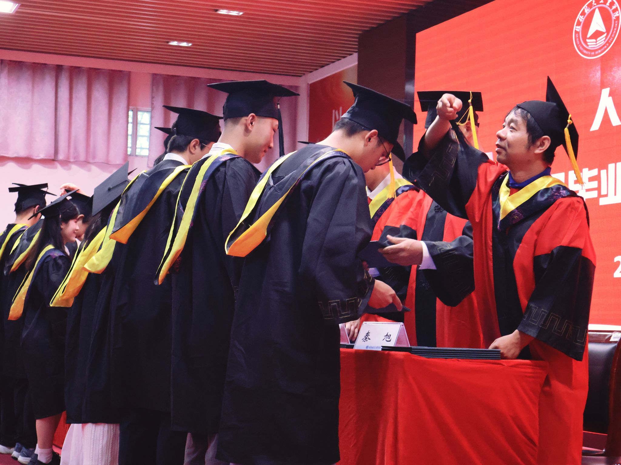 6月19日,公司在北校招聘大厅隆重举行2025届毕业生学士学位授予仪式。必一运动党政班子全体成员、教师代表、毕业生亲友代表及两百多名毕业生齐聚一堂,共同庆祝充满希望的时刻。