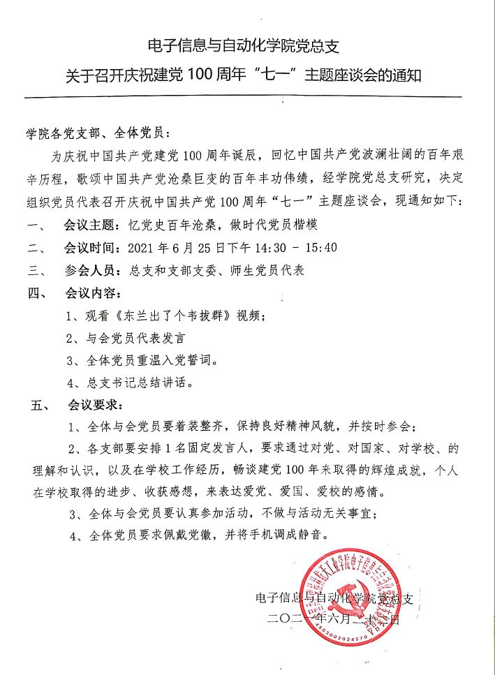 关于召开庆祝建党100周年七一座谈会的通知