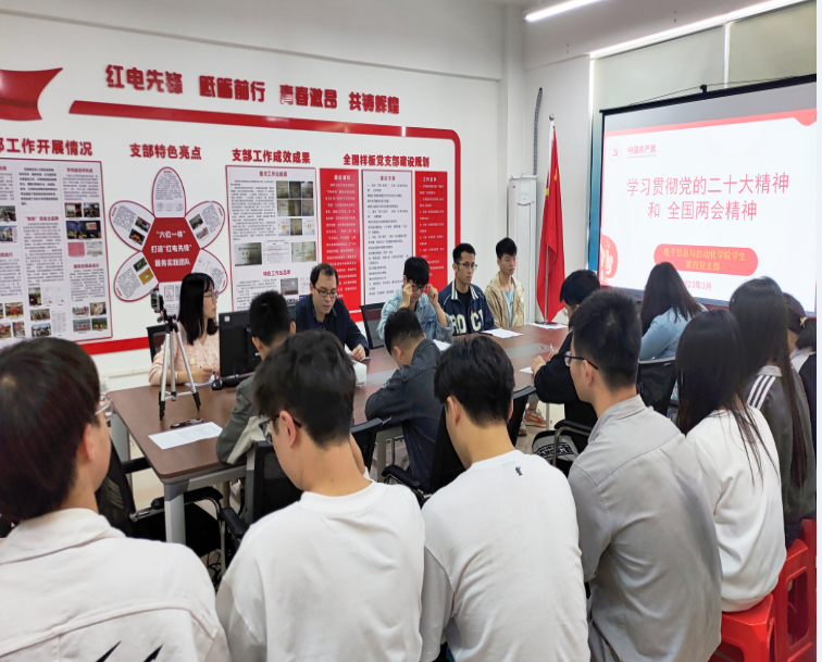 黄溪老师围绕党的二十大精神和全国两会精神进行了深入的解读,他指出党员同志应进一步深入学习领会“五个必由之路”、“五个有利条件”,深刻认识“两个确立”的决定性意义,增强“四个意识”、坚定“四个自信”、做到“两个维护”,用习近平新时代中国特色社会主义思想武装青年,紧扣贯彻党的二十大精神,推动学习全国两会精神走深走实。