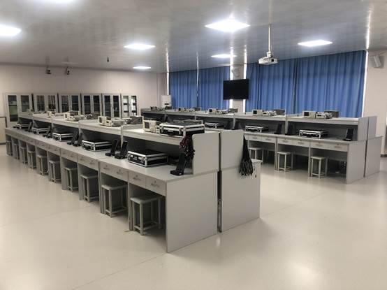 本专业拥有DSP实验室、光电实验室、模拟与数字实验室、高频实验室、EDA实验室、数字信号处理实验室、嵌入式实验室、PCB实验室、电子产品制造(SMT)校企合作的“产学研一体化实习实训基地”等9个专业实验实训室,设备总数达到849台。另外可利用的公司公共实验室5个。电子信息工程专业建立了一套完整的实验实训体系,可以满足专业实验、实训教学需求。