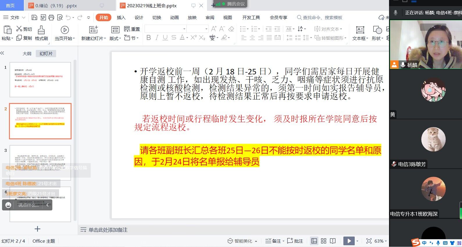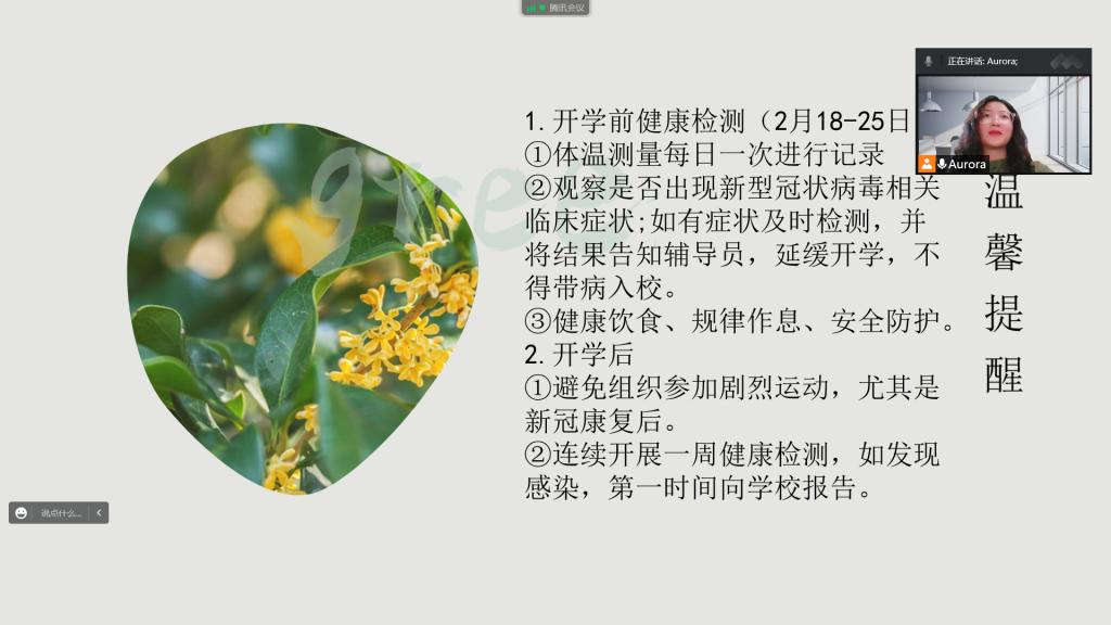 为保障员工在新学期有序返校,2月16日至21日,必一运动各年级辅导员开展春季开学线上主题班会,就开学返校要求、疫情防护、生活作息、考风考纪、诚信教育、心理健康等工作进行部署。