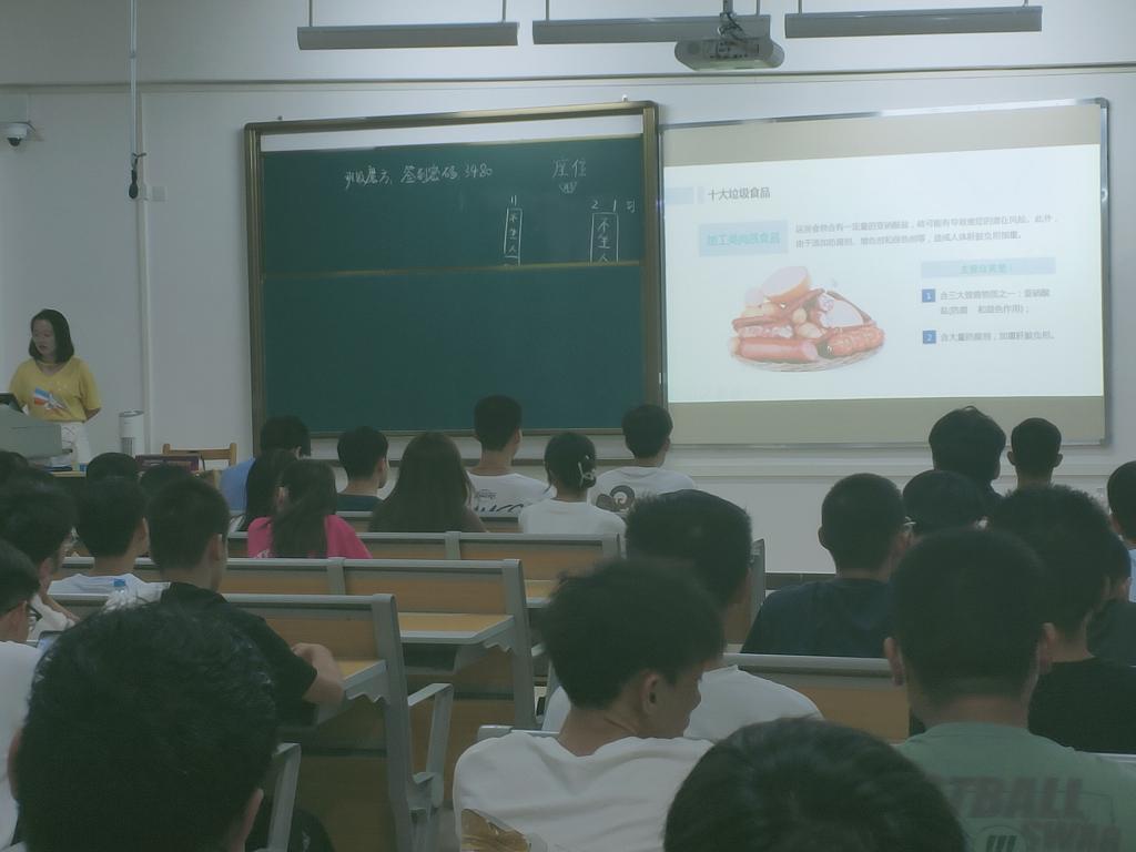 辅导员(班主任)以文字和图片的形式,讲述食品的种类、营养成分,合理搭配三餐以及不合格的食品的危害,为同学们全面普及食品卫生安全知识;通过讲解真实的案例,强调注意食品安全的重要性。老师们强调,民以食为天,食品安全关系到每一个人的健康,倡导同学们不吃“三无”食品,少吃高油高盐食品,多吃水果蔬菜,自觉养成良好的饮食习惯。